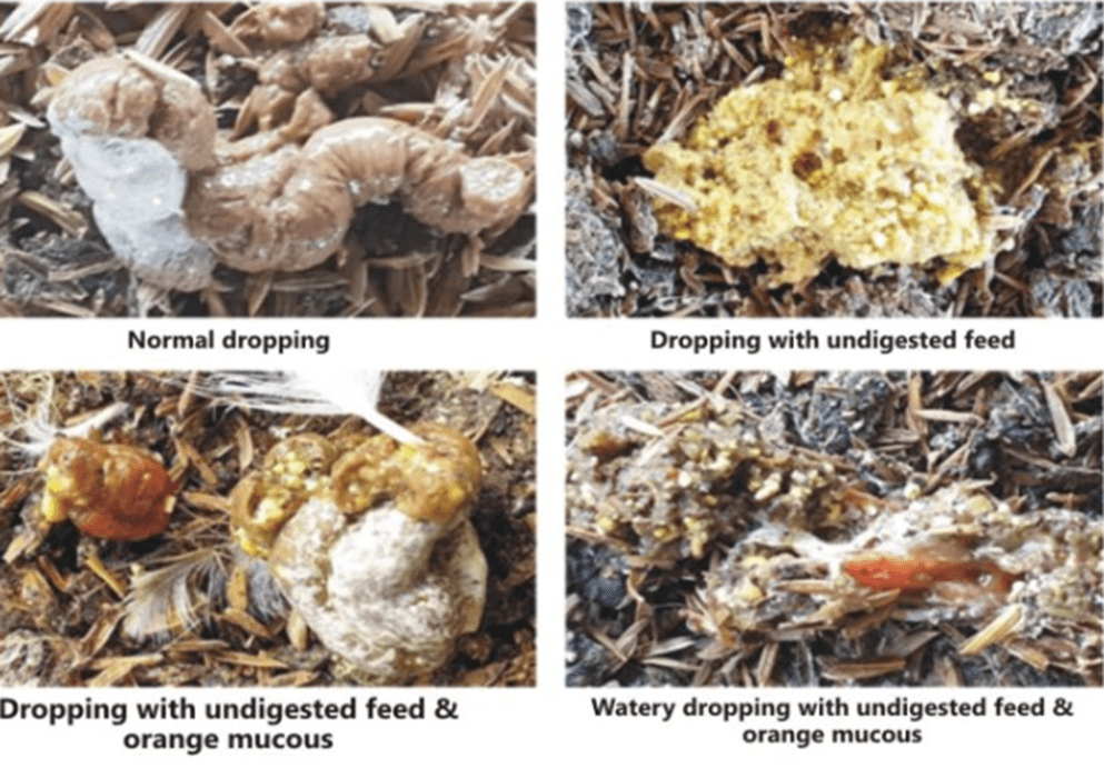 - Undigested Feed in Droppings: This is the most characteristic sign, with noticeable feed particles like grains and fiber appearing in feces.
