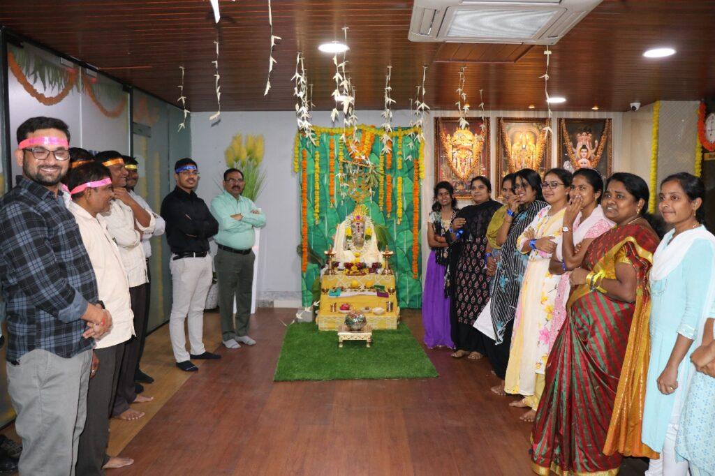 The Ganesh Chaturthi festivities began with the installation of Lord Ganesha’s idol, followed by a soulful Ganesh Pooja. All employees gathered with devotion and offered prayers together, creating a serene and spiritual ambiance across the office. The pooja was performed with utmost reverence and joy, invoking blessings for prosperity, harmony, and success for the entire PVS family.