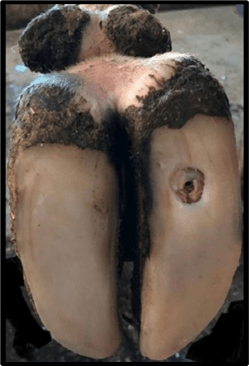The white line denotes the area on the hoof’s sole where the wall horn meets the sole horn. This particular horn is relatively weaker, rendering it more vulnerable to damage, particularly from lateral (shearing) forces exerted on the foot. White line disease in cattle is a condition marked by the detachment of the hoof wall from the sole, leading to a fissure that can allow dirt and bacteria to infiltrate, which may result in an abscess. This condition can develop due to trauma, stress, and subpar hoof quality stemming from insufficient nutrition. Treatment generally includes trimming the detached horn, applying a hoof block to redistribute weight, and improving housing and handling practices to reduce hoof stress.