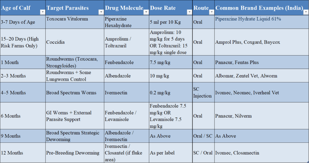 - Deworming Schedule for Dairy Calves: