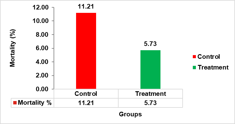 Figure 2: Effect of trial groups on the mortality percentage of broiler birds.