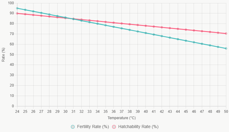 Breeder birds face compounded difficulties as they supply future generations. Heat exposure compromises male sperm production and female egg development, reducing fertility rates by 10-20% and hatchability by 5-15%. Semen quality declines while embryonic mortality increases due to inadequate egg protein formation. These birds, typically older and heavier, generate additional metabolic heat, intensifying their vulnerability.