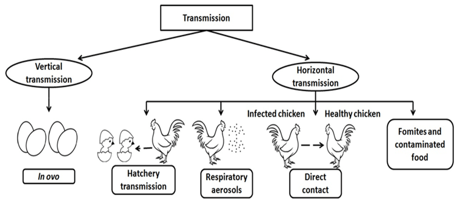 The host range of the MS infection includes chickens, turkeys, ducks, geese, guinea fowl, pheasants, quail and psittacines. Transmission occurs via both vertical and horizontal route. Vertical transmission takes place through transovarian infection, leading to early chick exposure, while horizontal transmission occurs via aerosol spread, respiratory secretions, fomites and human activity. Once introduced, the infection tends to persist, as infected flocks become lifelong carriers. Multi-age layer systems further support its persistence and contribute to episodic clinical outbreaks.