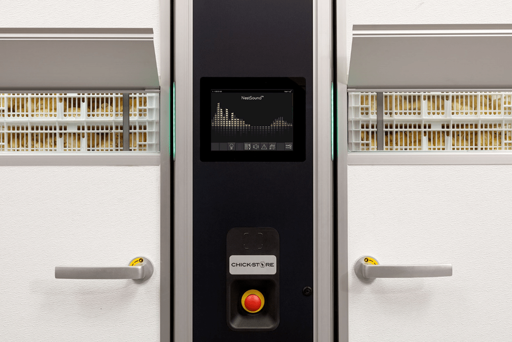 The sound produced by new-born chicks is an important bio-signal to receive information about their welfare. When chicks are comfortable in their environment, they sit quietly and relaxed, often sleeping for extended periods, which aids in their recovery from the intense hatching process. However, if they are not completely comfortable, they are active and constantly vocal. Hence, monitoring chick conditions based on vocalizations is an essential element of welfare-friendly poultry production. Until now, research had not established a direct application to monitor vocalizations in the hatchery. That gap prompted Petersime to further examine the use of sound data and led the company to develop NestSound™, a unique chick sound monitoring technology that automatically alerts hatchery managers when chicks require attention during storage.