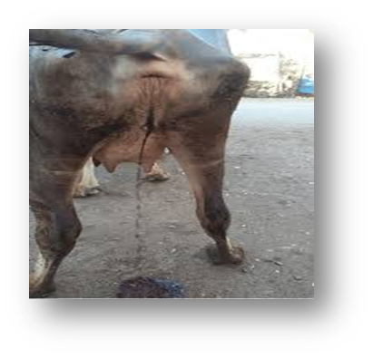 Fig: Affected cattle excreting Red urine (Lahu Mutna)
