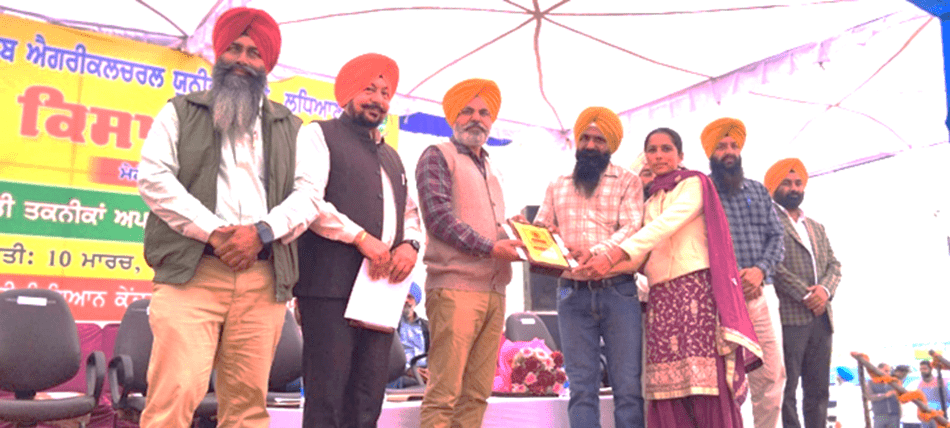 Receiving the “Award of Honour” from Punjab Agricultural University during Kisan Mela, March 2025