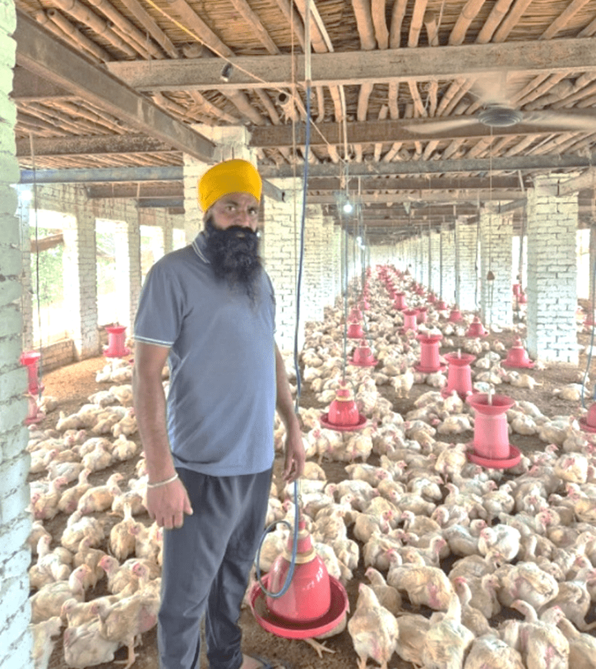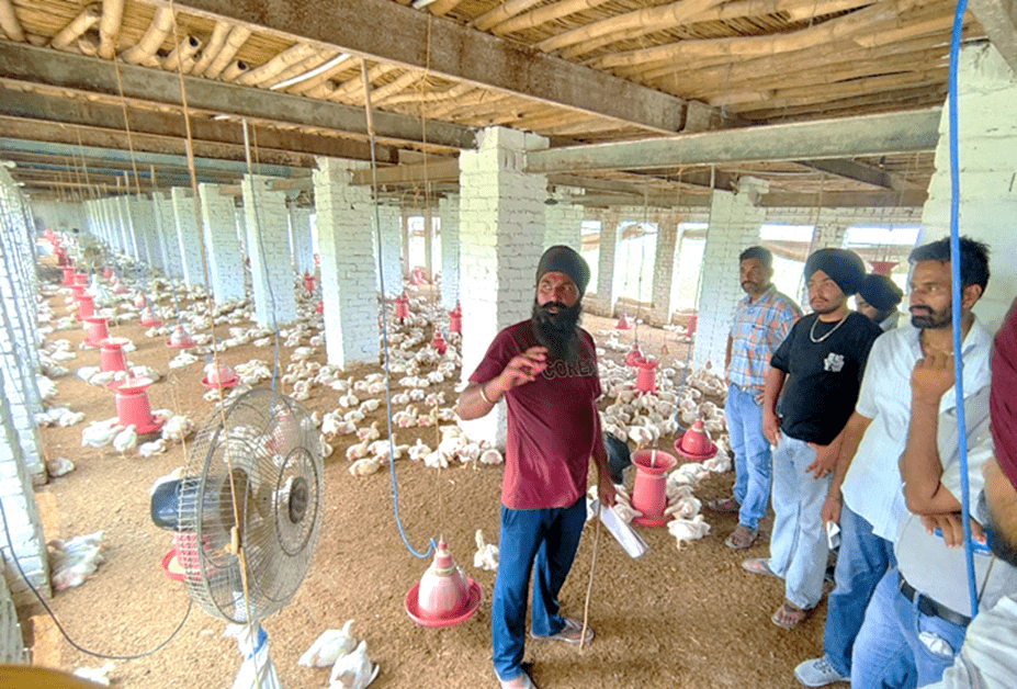 In Punjab, declining landholdings and increasing input costs have made farming less remunerative, particularly for small and marginal farmers. S. Karamjit Singh (aged 40) from village Ramana Chakk, district Amritsar, owned only three acres of land, which limited his income from traditional cropping. After observing successful poultry ventures in nearby villages, he decided to diversify his livelihood through broiler farming. In 2023, he established Mand Poultry Farm with 5,000 birds under a contract arrangement with the private company “Sampoorna,” which supplied chicks, feed, and medicines. Initially, due to lack of technical knowledge in feed, breed, and disease management, he experienced high mortality rates and poor profitability despite approaching several agencies for support.